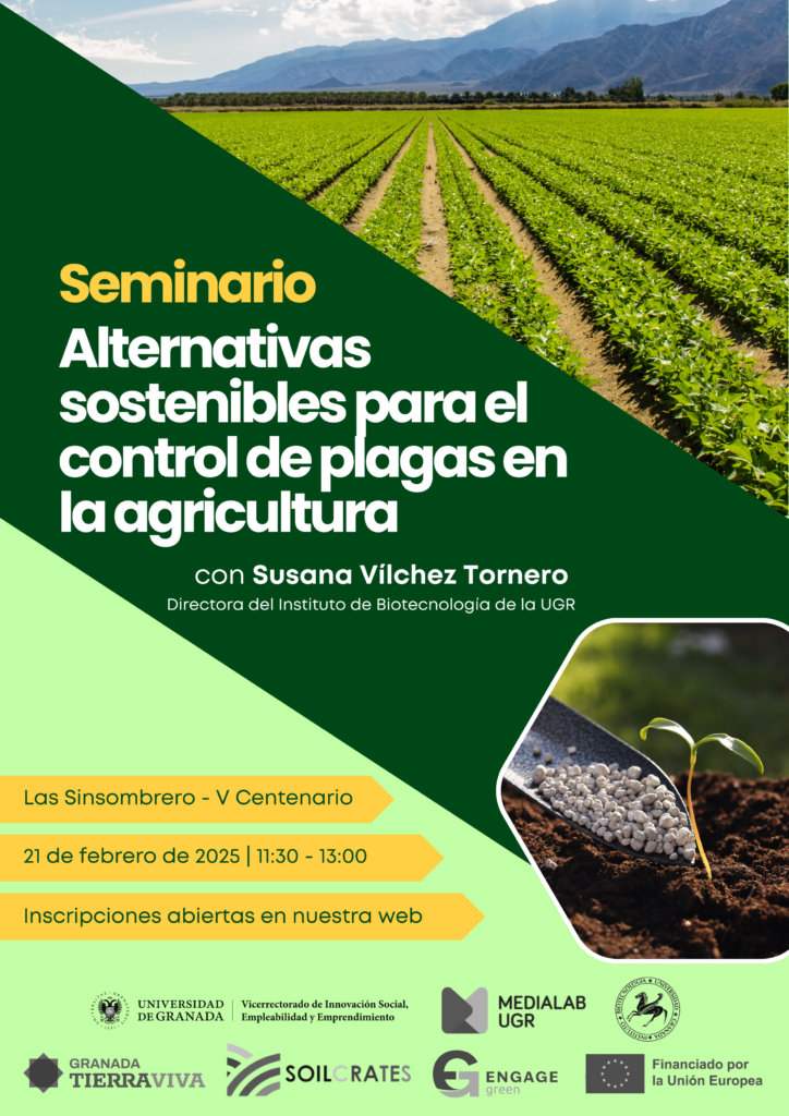 Actividad organizada por Granada Tierra Viva, living lab del proyecto SOILCRATES, financiado por el programa Horizonte Europa de la Unión Europea. Desde la Universidad de Granada, a través de Medialab UGR, nos gustaría invitarte a la celebración de un seminario práctico sobre alternativas sostenibles para el control de plagas en agricultura y entornos naturales, que tendrá lugar …