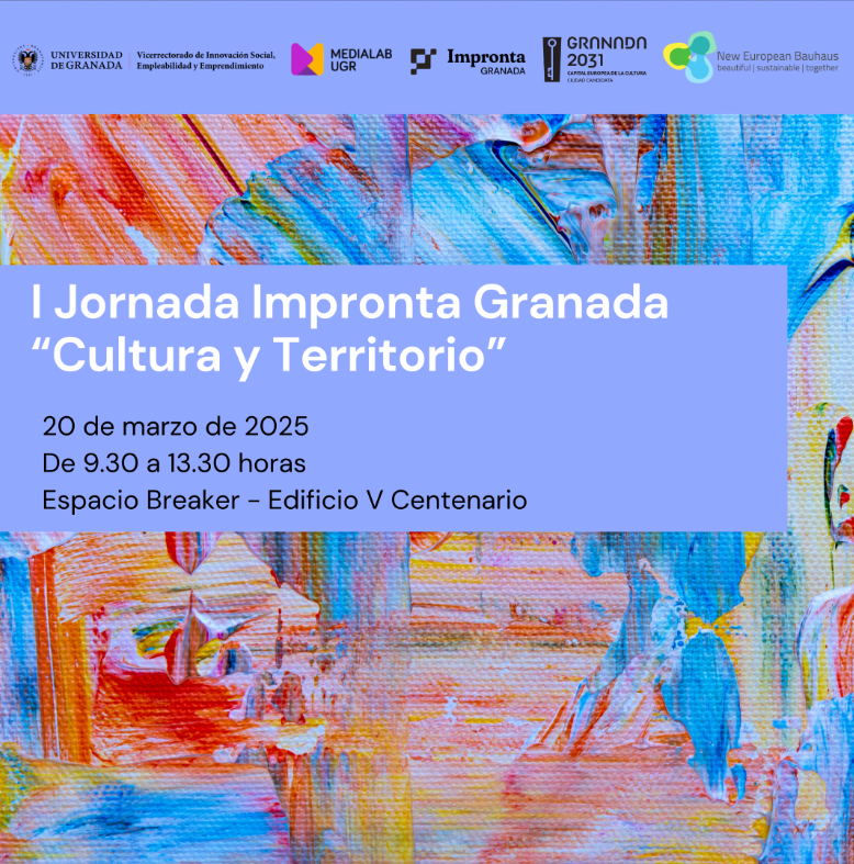 El próximo jueves 20 de marzo de 2025, se celebrará en el espacio Breaker del edificio V Centenario de la Universidad de Granada la jornada “Impronta Granada: Cultura y Territorio”, organizada por el Vicerrectorado de Innovación Social, Empleabilidad y Emprendimiento, dentro del marco del programa Impronta Granada.
