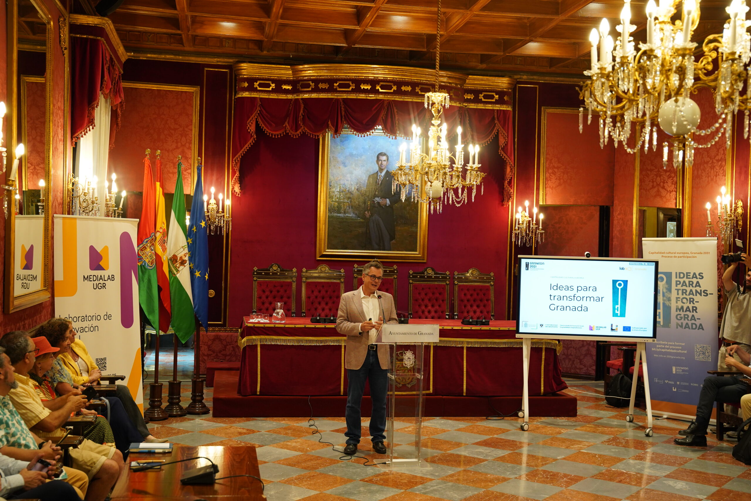 El Salón de Plenos del Ayuntamiento de Granada acogió ayer la jornada de presentación de los resultados del proceso participativo impulsado en el marco de la candidatura de Granada a Capital Europea de la Cultura 2031. Este proceso, que sigue abierto, contó con la participación de más de un centenar de personas en grupos de trabajo temáticos y la implicación activa de numerosos municipios de la provincia. Además, se recogieron cientos de propuestas a través de la plataforma LabIN Granada.