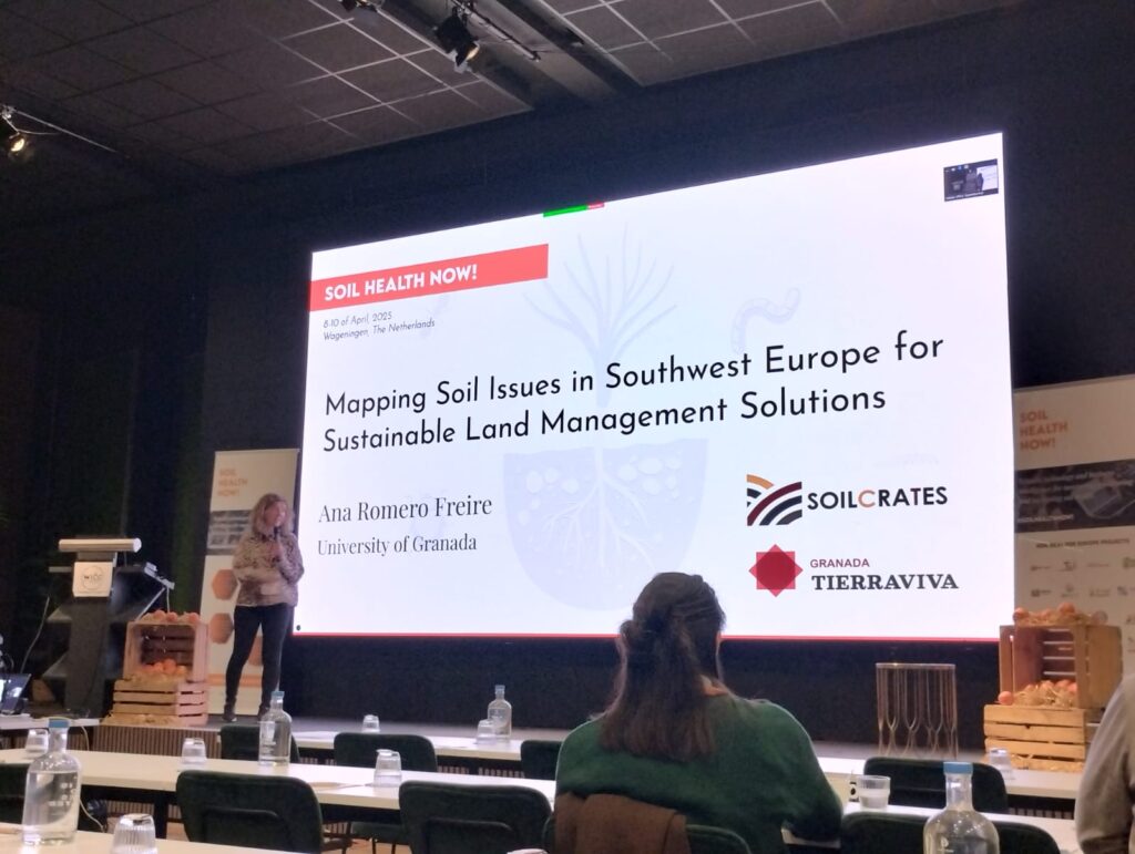 Investigadores del proyecto europeo SOILCRATES, adscritos al Departamento de Edafología y Química Agrícola de la Universidad de Granada (UGR), han participado en la conferencia Soil Health NOW, celebrada los días del 7 al 10 de abril en Wageningen (Países Bajos), con la presentación del living lab Granada Tierra Viva.