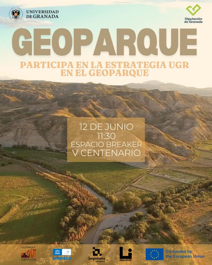 El papel de la Universidad de Granada, en su compromiso con el desarrollo de la provincia, es clave para contribuir a este gran proyecto. Es por ello que se convoca a una reunión para el diseño de la estrategia UGR en el Geoparque de Granada. La sesión tendrá lugar el día 12 de junio a las 11:30 en el Espacio Breaker del V Centenario (antigua Facultad de Medicina) con la presencia de Antonio Díaz, Diputado delegado del Área de Fondos Europeos, Desarrollo, Industria y Empleo de la Diputación de Granada; Myriam Prieto, directora del Geoparque; y Esteban Romero Frías, Vicerrector de Innovación Social, Empleabilidad y Emprendimiento. Se habilitará también medios digitales para poder seguir la sesión online, aunque os rogamos la participación presencial para poder dialogar directamente con los representantes de Diputación.