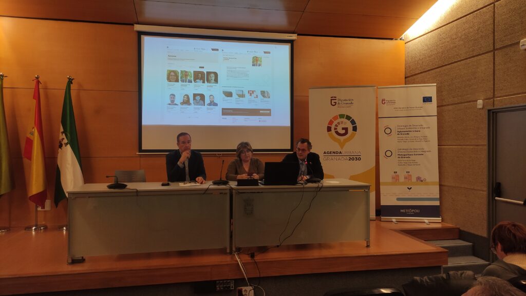 Ha continuado la sesión Ana Muñoz Arquelladas, Diputada de Empleo y Desarrollo Sostenible de Diputación, que, tras agradecer a todas las personas participantes del encuentro su presencia esta mañana, ha iniciado el segundo tramo de la jornada explicando la Agenda Urbana Metropolitana en el contexto de la planificación estratégica de la provincia. Siguiendo con esta contextualización, José Mateos, Director de Área de la Diputación de Granada, ha puesto en valor la financiación europea y la oportunidad que supone la misma para el desarrollo de políticas públicas que hagan frente a los retos territoriales provinciales.