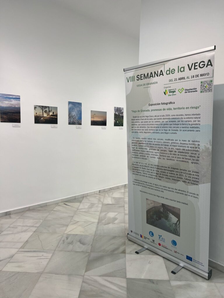La muestra, impulsada por el colectivo Salvemos la Vega-Vega Educa y la Diputación de Granada, podrá visitarse durante toda la semana y reúne una selección de imágenes tomadas por jóvenes estudiantes del IES Albaicin, IES Politécnico Hermenegildo Lanz y de la Escuela de Arte y Superior de Diseño José Val del Omar. A través de sus fotografías, el alumnado ha retratado la Vega de Granada durante el invierno de 2025, ofreciendo una mirada crítica, cercana y comprometida con el entorno natural, cultural y social del territorio.