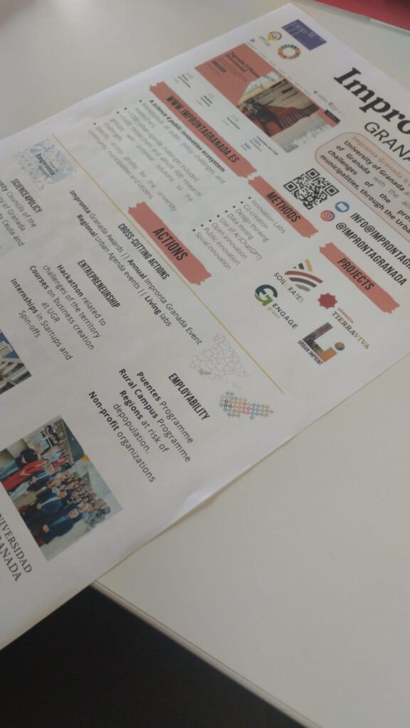 The session featured a presentation by Esteban Romero Frías, Vice-Rector for Social Innovation, Employability, and Entrepreneurship at the University of Granada, who introduced the approach developed by the UGR regarding public innovation, participatory governance, and the linkage between science and public policy through the Impronta Granada alliance, a collaboration between the University and the Provincial Council. Among other initiatives within this framework, special mention was made of the UGR County Councils, promoted by Medialab UGR, scientific advisory programs for administrations, and the citizen science program in the territory. Additionally, the occasion was used to present the Granada Tierra Viva Living Lab, funded by the European Union’s Horizon Europe program through the SOILCRATES project.